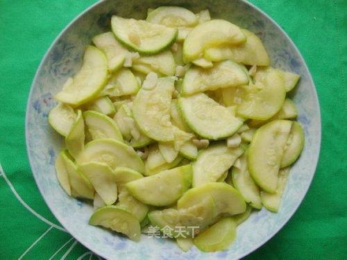 2. 切片:将小瓜切成薄片,厚度大约在0.5厘米左右。切片时,可以斜着切,这样蒸出来的小瓜更加美观。