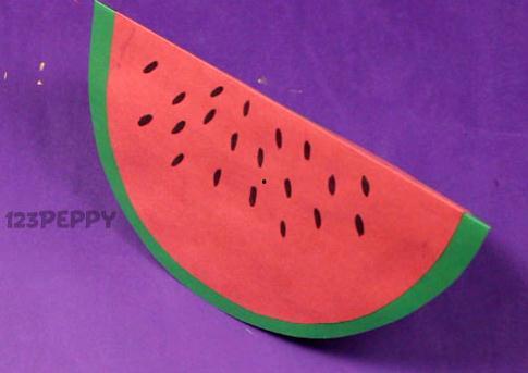 - 步骤一:取一张绿色卡纸,用剪刀剪成西瓜形状。